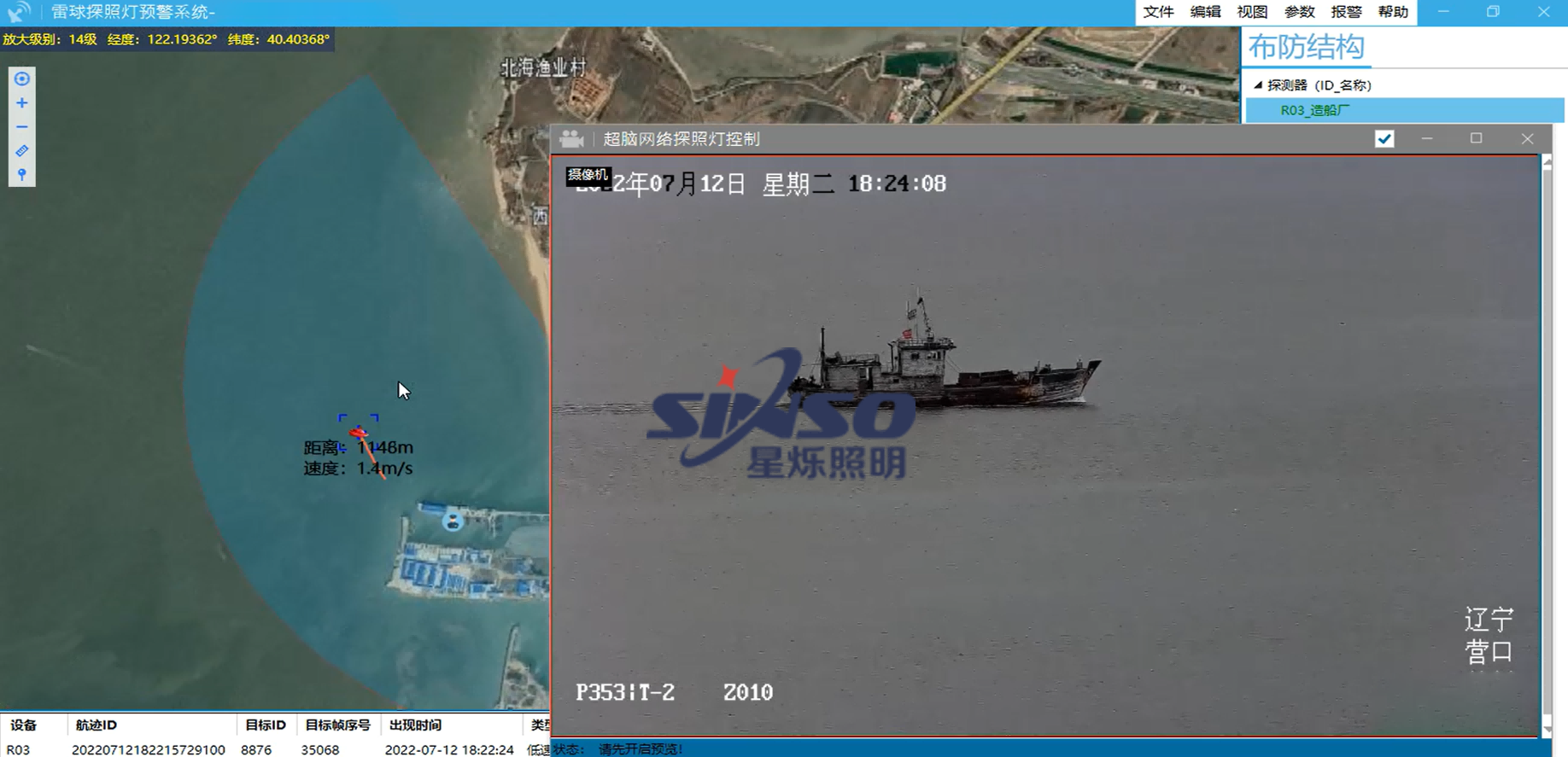 當(dāng)有可疑船只或人員進(jìn)入?yún)^(qū)域可快速發(fā)現(xiàn),系統(tǒng)會(huì)自動(dòng)預(yù)警,雷達(dá)隨即聯(lián)動(dòng)攝像機(jī)和探照燈對(duì)目標(biāo)進(jìn)行跟蹤,報(bào)警信息發(fā)送到值班室,提醒值班人員觀察警情,由于我們的值班人員在前往事發(fā)地需要花費(fèi)很多時(shí)間,在確認(rèn)警情性質(zhì)后,可以及時(shí)向養(yǎng)殖場(chǎng)喊話,或者通過超亮探照燈和云廣播喊話對(duì)其進(jìn)行驅(qū)趕,再進(jìn)行報(bào)警、抓捕準(zhǔn)備等防衛(wèi)措施。并提供違法證據(jù)記錄。該系統(tǒng)適用于全天候的應(yīng)用場(chǎng)景,在白天、黑夜甚至霧霾等惡劣天氣下能夠探測(cè)到十幾公里范圍內(nèi)的目標(biāo),并獲取清晰的圖像,可有效防止偷盜事件的發(fā)生,為海上養(yǎng)殖場(chǎng)的安全運(yùn)行提供保障。