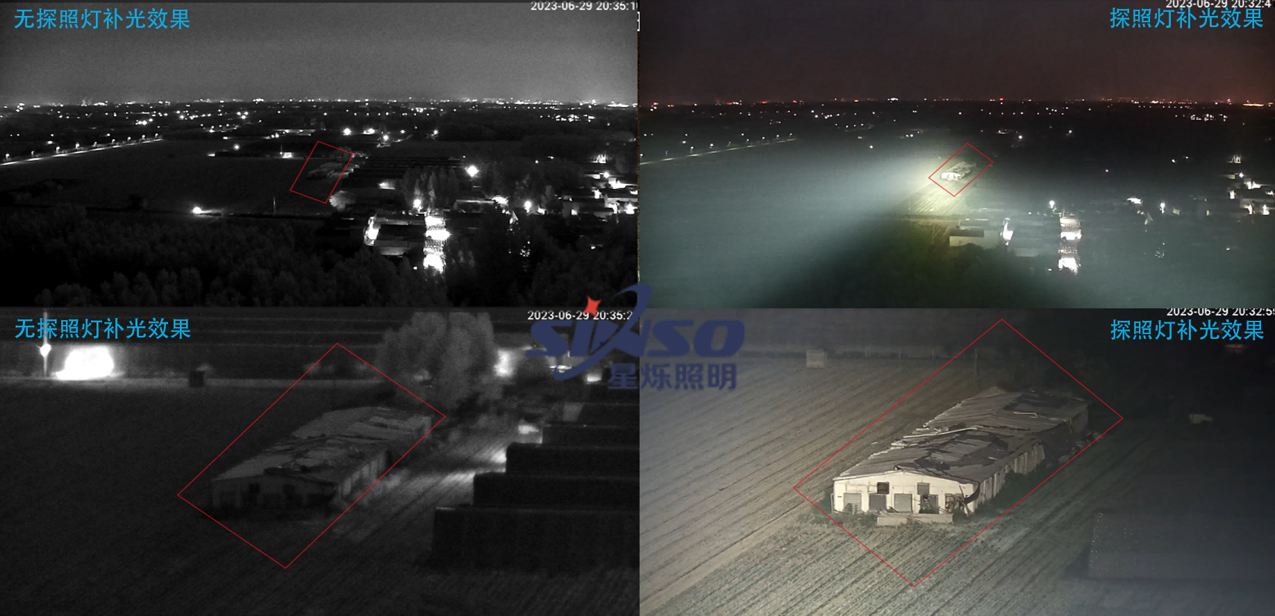 LED探照燈遠、中、近距離補光效果明顯,監(jiān)控區(qū)域的細節(jié)清晰可見。LED探照燈可以隨時關閉和開啟,不做補光燈使用,可以作為照明設備,也可以作為監(jiān)控威懾和驅趕非法目標的武器,一個產(chǎn)品多種用途。