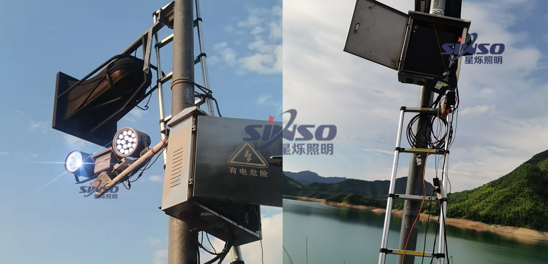 探照燈提供自動(dòng)開(kāi)關(guān)燈和追蹤功能,當(dāng)有人員靠近監(jiān)控水域時(shí),監(jiān)控設(shè)備將立即抓拍圖像并傳輸?shù)娇刂浦行?,同時(shí)發(fā)出聲光報(bào)警,LED探照燈立即鎖定目標(biāo)位置并實(shí)時(shí)跟蹤目標(biāo)。當(dāng)發(fā)生危險(xiǎn)情況時(shí),探照燈可以引導(dǎo)救援人員以最快速度趕往該水域進(jìn)行救援,同時(shí)也為安全撤離指引方向。