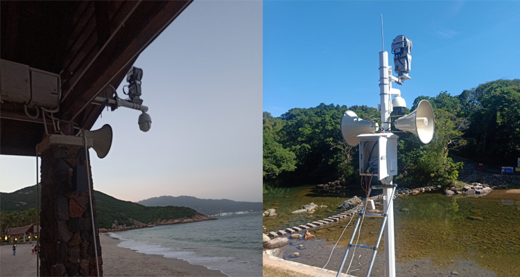 監(jiān)控設(shè)備-攝像機(jī):智能監(jiān)控?cái)z像頭能夠捕捉危險(xiǎn)水域中的人流動(dòng)態(tài),可以實(shí)時(shí)監(jiān)視水域情況,一旦有人進(jìn)入危險(xiǎn)區(qū)域,通過(guò)揚(yáng)聲器提醒工作人員和游客可能發(fā)生的危險(xiǎn)。