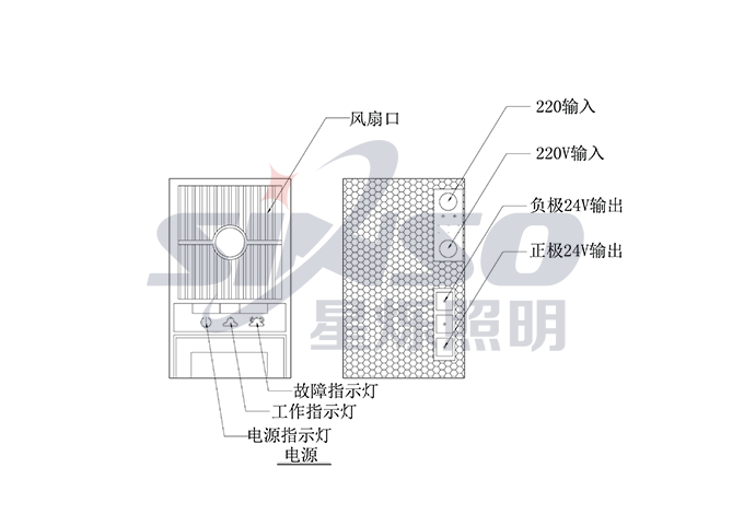 結(jié)合以上情況,星爍照明工程公司率先在每路燈內(nèi)只使用DC24V一路線路,選用進口大功率電源,將電源集中放置在樓頂,實行集中管理。并且在每個電箱集成了短路、過載、超溫等完善保護,智能顯示,運行狀態(tài)一目了然。