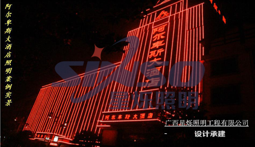 星爍照明決定使用單紅色,保持與中部大樓相同色調(diào),易于識別記憶。配合自有先進的控制技術(shù),自主設(shè)計并實現(xiàn)12種3D立體動畫效果,無人值守,自動運行。使酒店在當(dāng)?shù)赝砩嫌葹橥怀觯蔀楫?dāng)?shù)匾咕暗貥?biāo)。