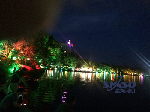 桂林是典型的山水城市,自然山水是構(gòu)成桂林城市景觀的基本元素。兩江四湖景區(qū)真實(shí)地體現(xiàn)了“千峰環(huán)野立,一水抱城流”的美妙景致和“城在景中,景在城中”的詩(shī)情畫意。兩江四湖景區(qū)的園林綠化盡顯青山碧水之風(fēng)韻、園林花卉之典雅、歷史文化之豐富、異國(guó)風(fēng)情之點(diǎn)綴,加上沿途造型各異的特色橋梁,景色可謂美不勝收,令人留連忘返;特別在夜晚的璀璨藝術(shù)燈光亮化映襯下彰顯出五彩繽紛、夢(mèng)幻絕倫、無(wú)限遐想的高雅意境。