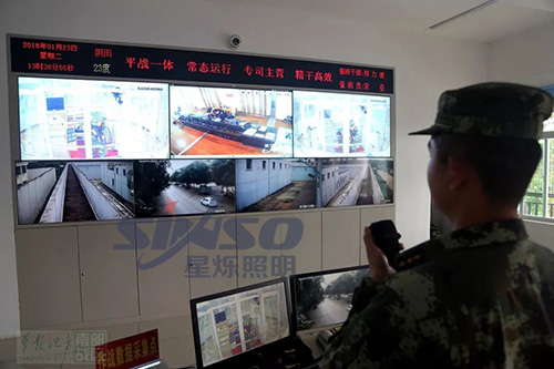 監(jiān)區(qū)照明,在崗樓頂端配置自動(dòng)巡控探照燈,監(jiān)墻外安裝陶瓷氙氣燈,巡邏通道內(nèi)安裝陶瓷氙氣燈,實(shí)現(xiàn)夜間照明“白晝化”,既確保監(jiān)區(qū)監(jiān)控?zé)o死角盲區(qū),又可全程跟蹤捕捉移動(dòng)目標(biāo);使周界的內(nèi)外圍墻燈具,崗樓的自動(dòng)巡控探照燈,各個(gè)區(qū)域的報(bào)警監(jiān)控系統(tǒng)聯(lián)合控制,實(shí)現(xiàn)一個(gè)智能化的管理系統(tǒng),配合值守官兵進(jìn)行夜間巡視工作。