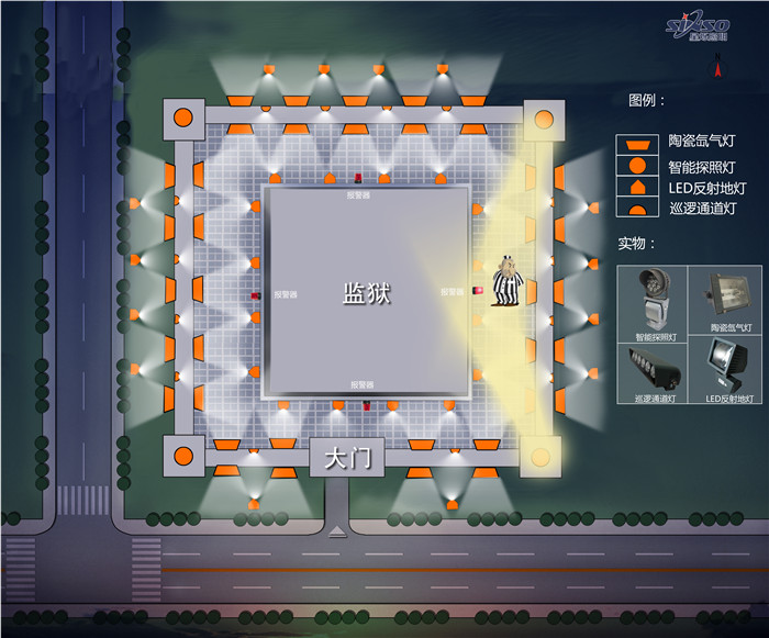 強光致盲系統(tǒng)是有陶瓷氙氣燈與報警設(shè)備聯(lián)動構(gòu)成。當(dāng)無警情時,智能陶瓷氙氣燈為節(jié)能照明狀態(tài)。當(dāng)入侵目標(biāo)接近警戒區(qū),智能探照燈高亮、陶瓷氙氣燈開啟強光致盲功能,強紫外線、高亮頻閃,人眼無法直視,燈光覆蓋區(qū)域可導(dǎo)致暫時性失明。解除警報后,探照燈自動關(guān)閉并復(fù)位,陶瓷氙氣燈恢復(fù)節(jié)能照明狀態(tài)。