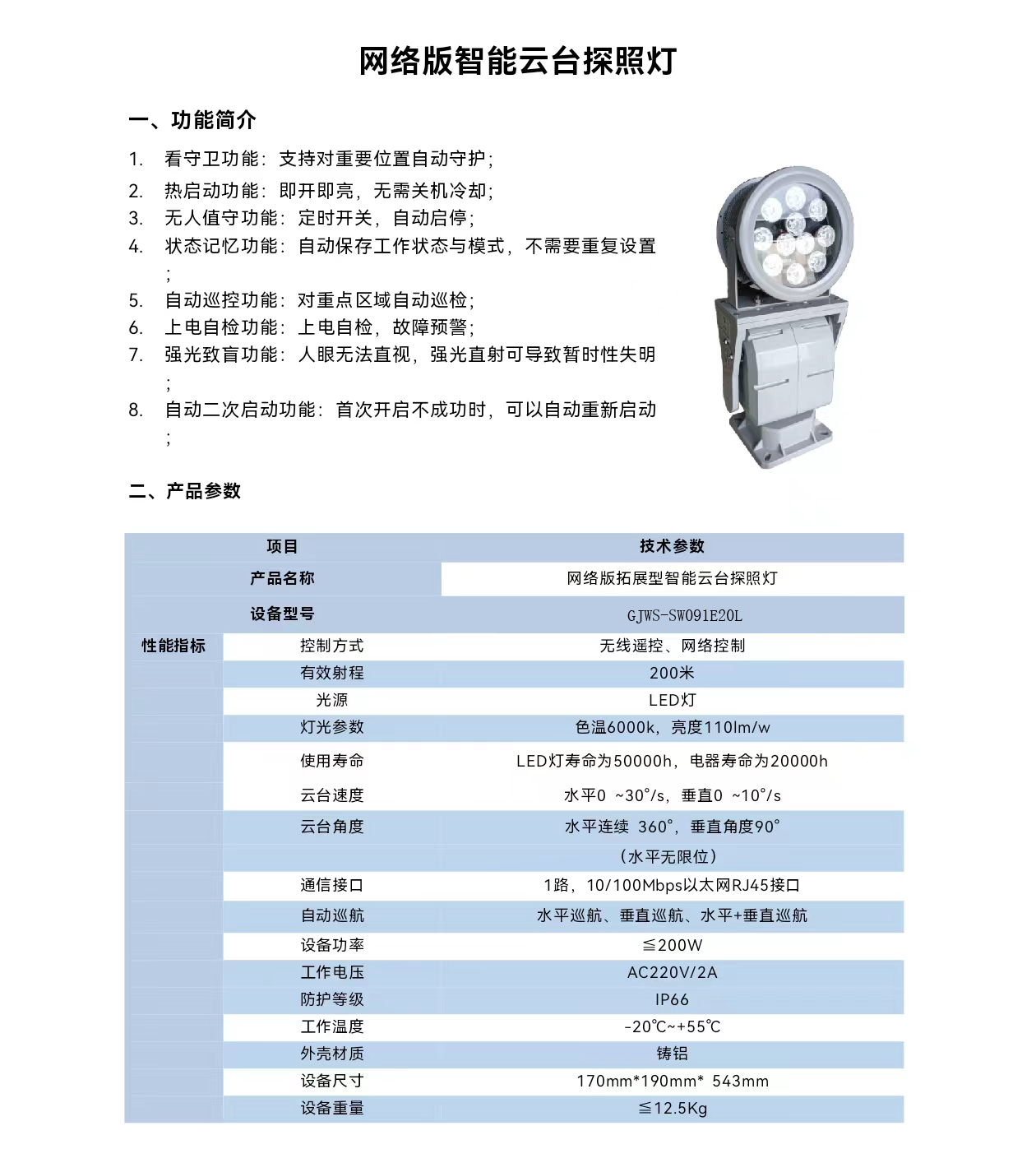 網(wǎng)絡智能巡控探照燈 崗監(jiān)衛(wèi)士 GJWS-SW091E20L-JQ