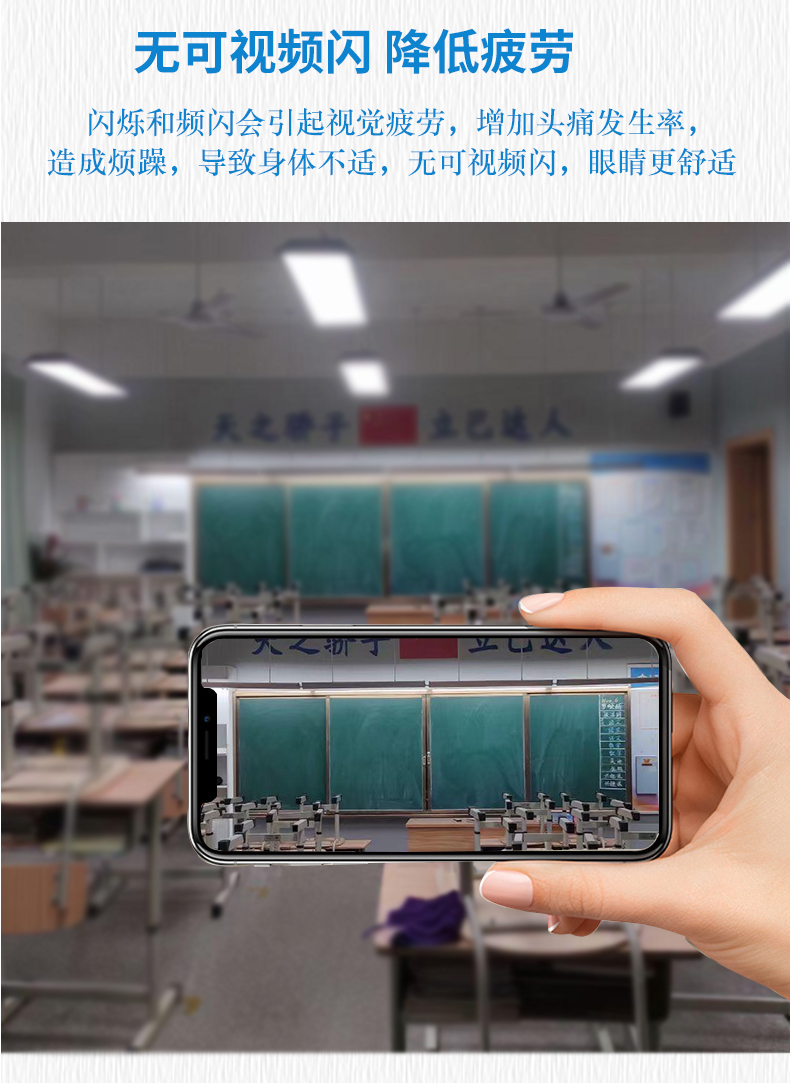 教室照明,在我國中小學(xué)校一直停留在比較落后的水平,其表現(xiàn)在,教室照明設(shè)計(jì)不合理,存在以下問題:1.藍(lán)光危害:容易造成視覺疲勞導(dǎo)致近視;2.頻閃嚴(yán)重:頻繁自主調(diào)節(jié),引起視覺疲勞;3.炫光值高:容易分散學(xué)生的注意力,無法集中精力學(xué)習(xí);4.顯示指數(shù)偏低:影響眼睛對(duì)物體色彩的正確判別;5.色溫偏高:光線顏色過于偏白容易引起學(xué)生亢奮;6.照明度不足:照明亮度分布不均勻的環(huán)境下學(xué)習(xí)會(huì)影響學(xué)生用眼;落后的教室照明質(zhì)量直接影響著學(xué)生的視力健康和學(xué)習(xí)效率。