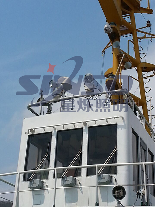 舟山港海通輪駁有限責任公司于2015年3月采購了4臺型號:PD-132船用探照燈,另加5只氙氣燈燈泡,用于船舶照明。船舶上安裝了我們的船用探照燈,使得能巡視到的面積更大了,有利于航行安全。星爍船用探照燈有效射程可到1500m,海面航行,巡視專用燈。